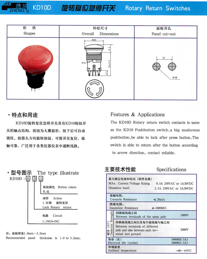 KD10D旋轉(zhuǎn)急停復(fù)位開(kāi)關(guān)